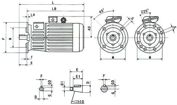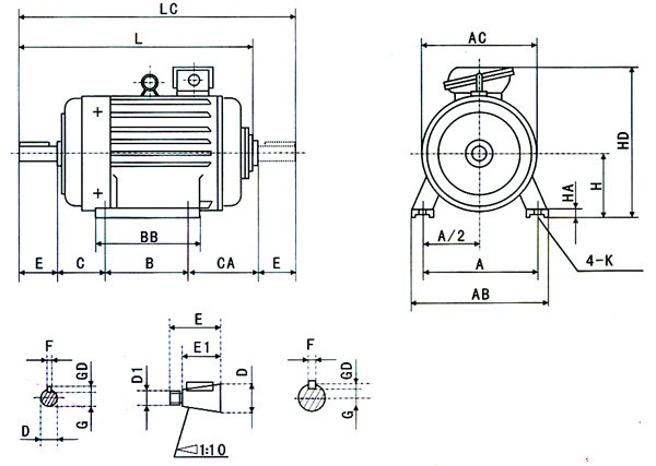 3.6驅(qū)動類型:電機(jī)設(shè)計(jì)用于聯(lián)軸器或正齒輪驅(qū)動。使用正齒輪傳動時(shí),小齒輪的節(jié)距直徑不應(yīng)小于軸延伸部分的兩倍